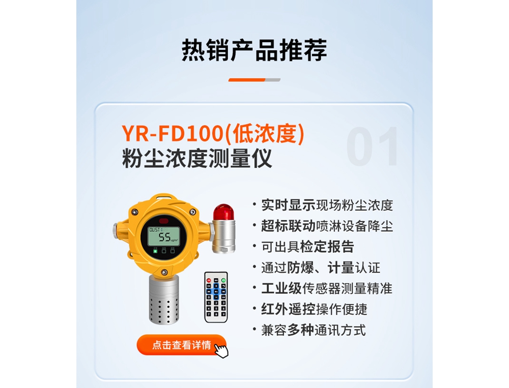 粉尘报警探测器适用于各种粉尘场所,产品涵盖固定式、手提式、插入式、便携式、手持式等各种款式规格,适用您各种需求,联系客服提出需求,免费为您提供解决方案