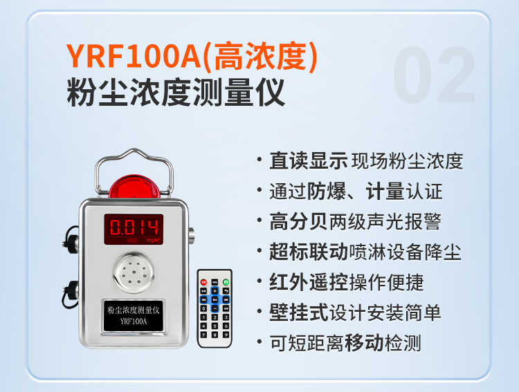 确保厂区内各种防尘设备有效运行,安装使用粉尘浓度测量仪及布袋粉尘检漏仪,实时监测环境中粉尘浓度状况及除尘后粉尘浓度,对粉尘浓度的异常及时报警,保护主体设备正常运行,减少企业经济损失。