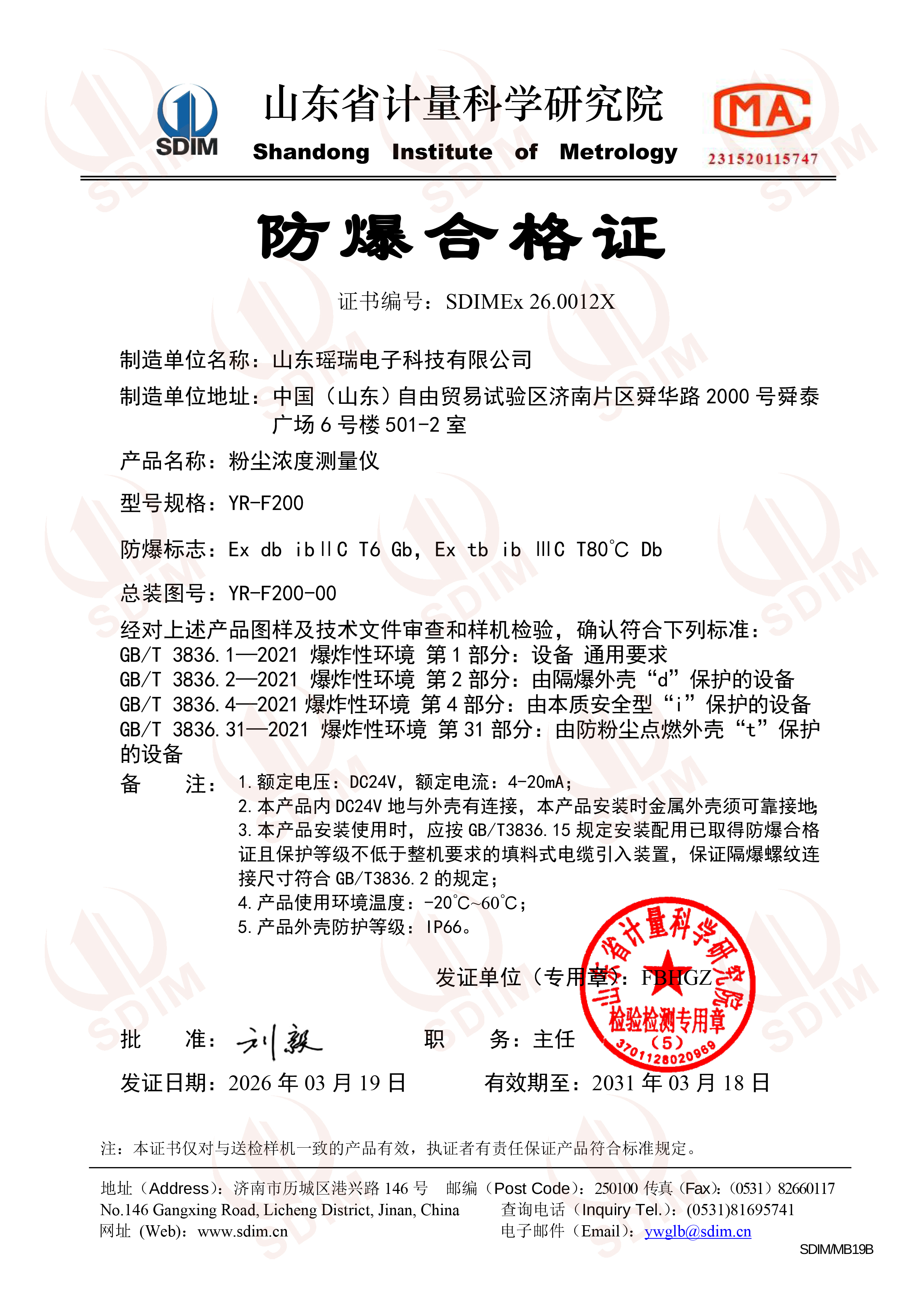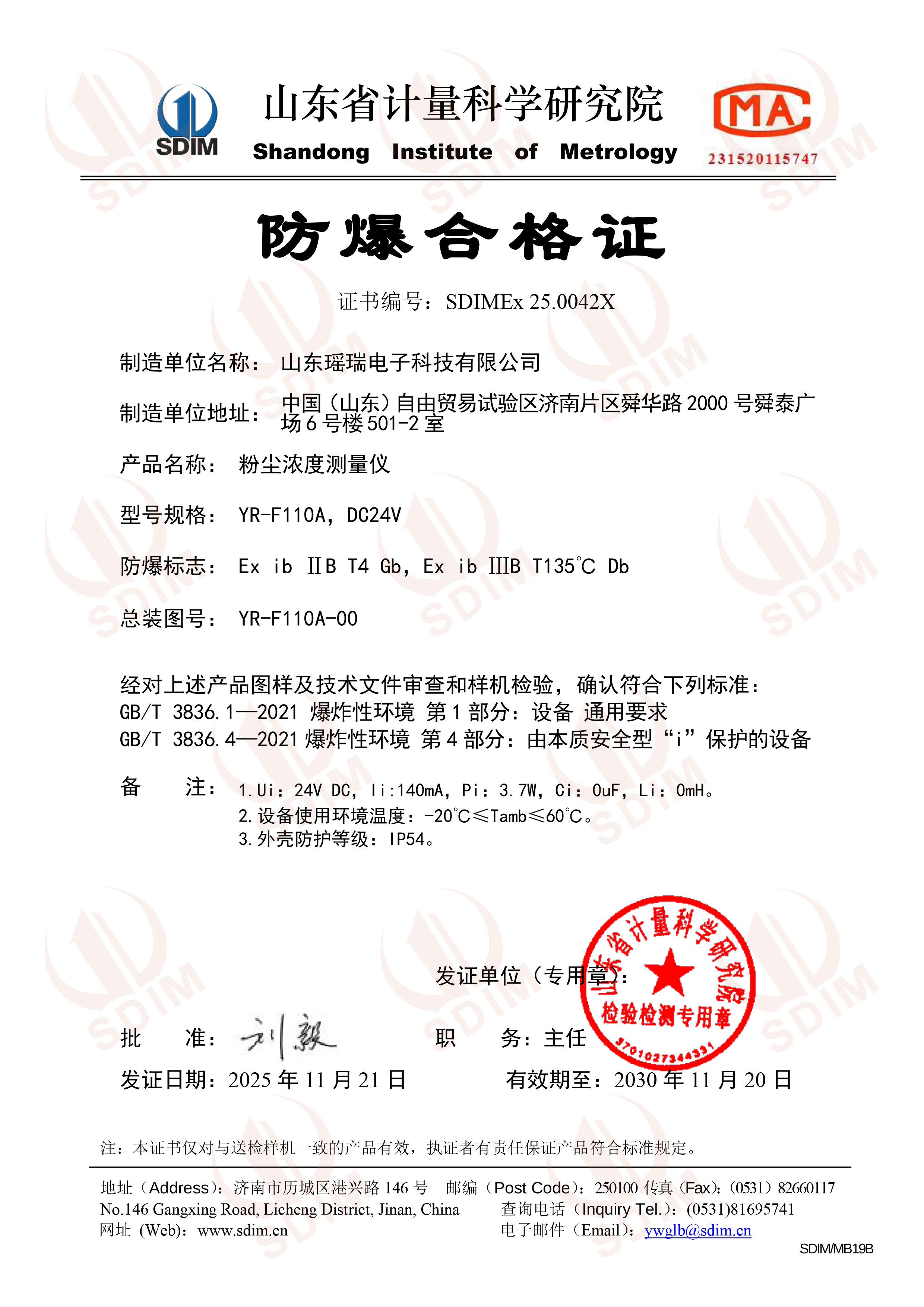 YR-F110A防爆合格证